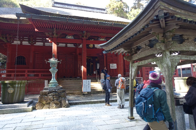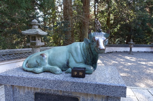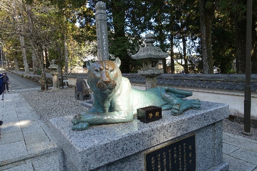 二十二町(町石はここまで)は朝熊峠見晴台で、ベンチもあり、展望もきき、ここで一休みした。ここから10分ほどで朝熊ヶ岳山頂である。山頂にはトイレも自販機もあった。展望もいいが、まだ次の金剛證寺に向かうため、全員写真を撮った後、八代龍王舎の裏の道を下る。20分ほど下ると左側に3mぐらいもある板が林立していた。そばに行ってみると卒塔婆であった。尾張では見かけない長さであった。もう少し下ると、金剛證寺本堂が見えてきた。伊勢神宮の奥の院とも呼ばれているそうで建物も庭も立派であった。狛犬の代わりに、智慧虎と福丑が置かれていた。しっかり撫でてご利益をいただいてきた。