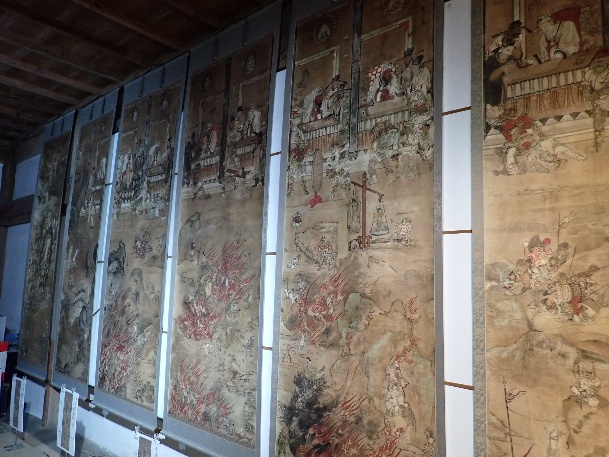 弘法大使が開いたと言われる長岳寺では、重要文化財の仏像や学芸員の方の説明をお聞きして、地獄絵図の実物を拝観することができました。当時としては、人々に伝えるには絵図しかなかったのでしょうが、それが現在まで残っていることが信じられない事です。