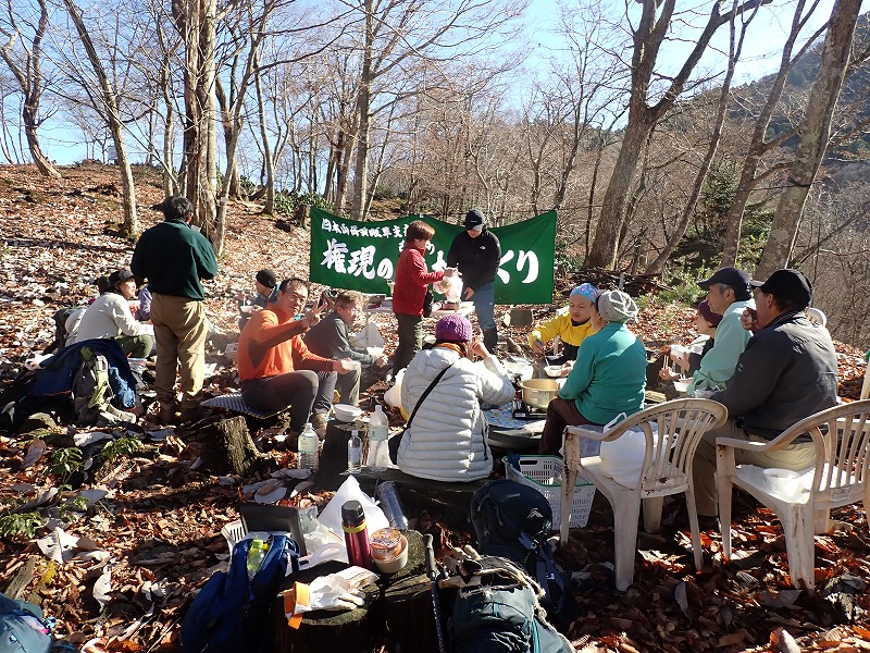 今年最後の森林づくり作業である。天候は、11月の下旬とは思えない程の暖かく晴天に恵まれましたが、森周辺の樹は全て葉を落とし厳しい冬がすぐそこまで来ている気配を感じさせていました。作業終了後は、好例の食事会(芋煮会)で一年の労を締めくくりました。