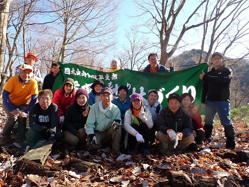 今回の参加者は16名で、「森林づくり作業」、「山頂迄の登山道の確認・修復作業」、「食事担当」の各班に分かれ作業を進めましたが、山頂への作業に足を向けた方が多かったです。